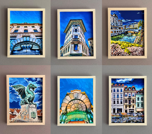 Ljubljana v modrem – Blue Ljubljana Art Prints